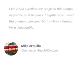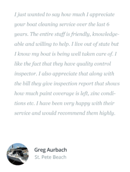 Our experience (and expertise) gained by many years of servicing boats in Tampa Bay area has shown that the most effective hull cleaning cycle is every four weeks. Our monthly rates are also most cost-efficient than our per time rates because we can schedule geographically and cut down on travel time. By having your boat clean monthly, it will run faster, maneuver more easily, look better and most importantly will cut down on your fuel cost.