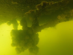 Underwater pictures of a running gear, BEFORE it was cleaned and detailed by our service team. This is what sea